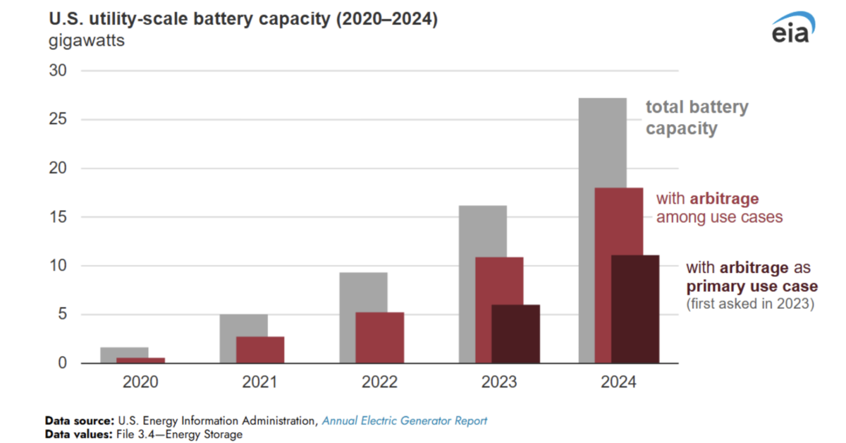 The latest data from the US Energy Information Administration (EIA) confirm that arbitration-the practice of buying electricity when prices are low and selling when the prices are high-the dominant use case remains for battery storage systems on Utility scale in the United States.