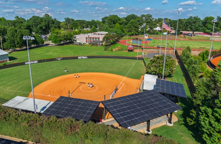 Woodward AcademyA private pre-k-12 school in Atlanta, Georgia, is probably the first K-12 school in the country that installs solar panels on athletic facilities. The 47.7-KW awning system at the Sutherland Family Softball complex was built by Cherry Street Energy And join two other solar systems on the Woodward campus.
