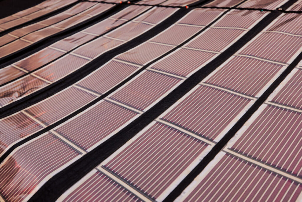 Produced using reel-to-reel printing techniques on recyclable PET plastic, Kardinia’s production cost target is under $10 per square meter and weighing less than 0.3kg per m2.