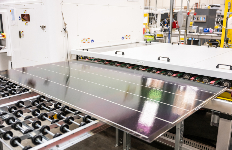 The Caelux Perovskite Active Glass comes from the pilot manufacturing in Baldwin Park, California. Credit: Caelux