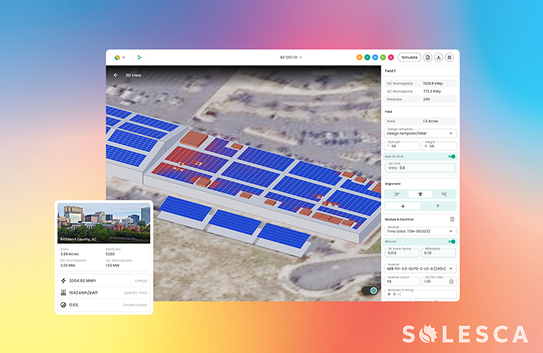 Solesca is a pre-CAD solution for solar energy for C&I and ground-mount projects. Non-technical solar developers can make layouts in a few minutes and generate accurate energy estimates.