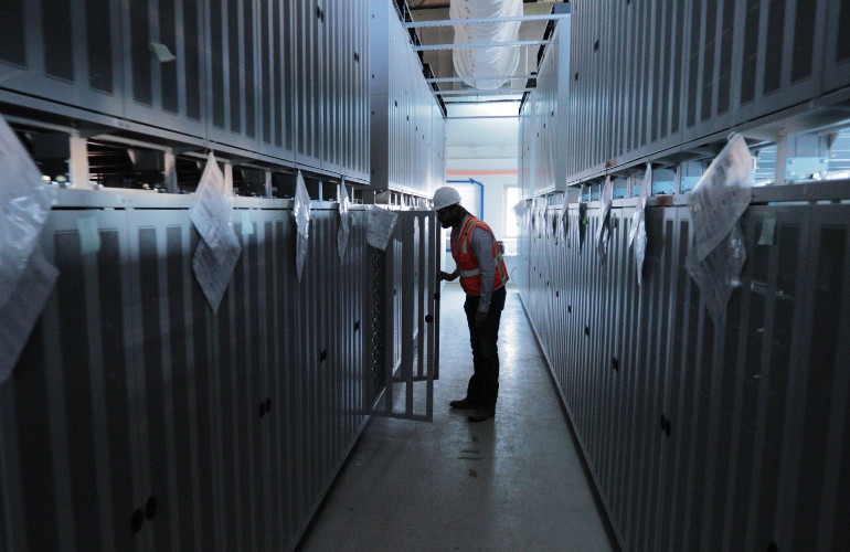 File photo of Moss Landing and the inverters outside the building that houses the lithium-ion batteries.