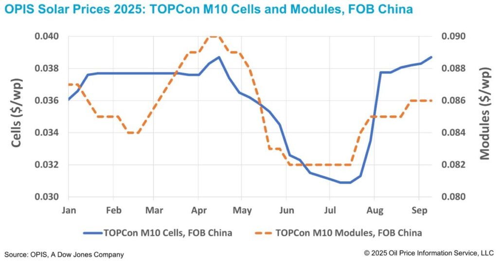 Industry authorities and the government are preparing to roll out a legally binding module price base in Q4 2025, reportedly set at 0.759 Yuan/W (equal to $ 0.098/W FOB including VAT discount). With this measure that popping up, some expect that module prizes will support until November, which in turn could increase PRICES in the short term, says sources.