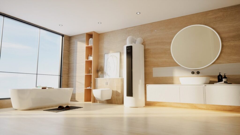 According to Clivet, the system records renewable energy from the air and converts it into heat to increase the water temperature in the storage tank, with minimal electricity consumption.
