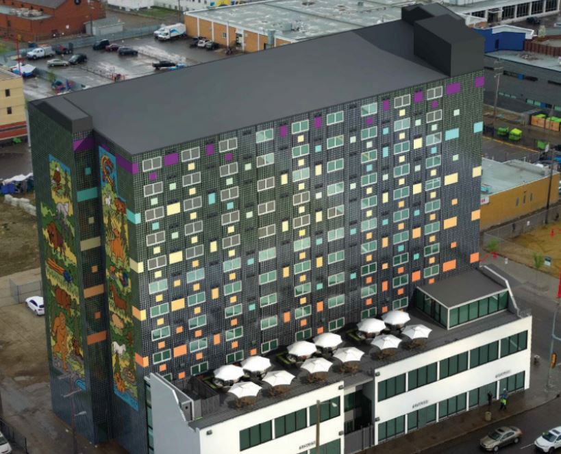 The wall painting of the local indigenous artist Lance Cardinal is a visual story of innovation, resilience and community spirit in the heart of the city.