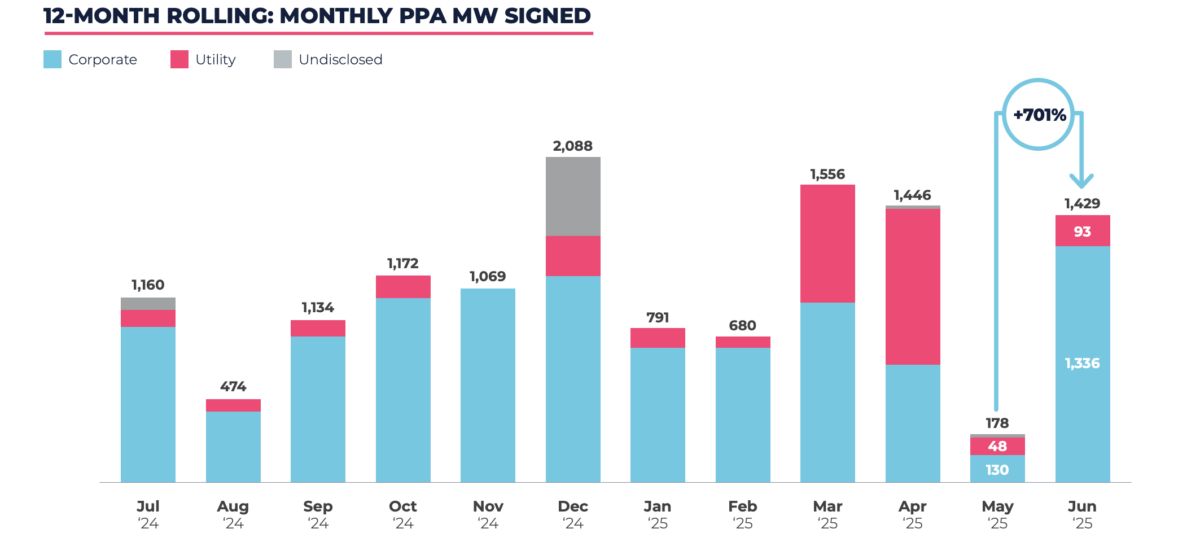 The latest report from Pexapark adds that after the first six months of the year the monthly volume average of newly signed PPAs in 2025 at 1,013 MW is. This is 26% lower on an average of 1,376 MW registered in the first six months of 2024.