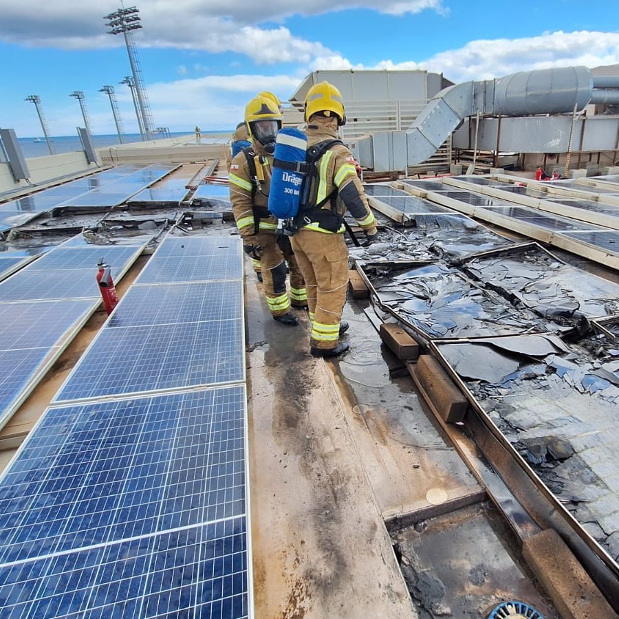 Fire caused by an electrical fault from an overheated arc cable struck the solar panels of the Europa Point Stadium in Gibraltar. The fire brigade had the fire under control and extinguished within twenty minutes.