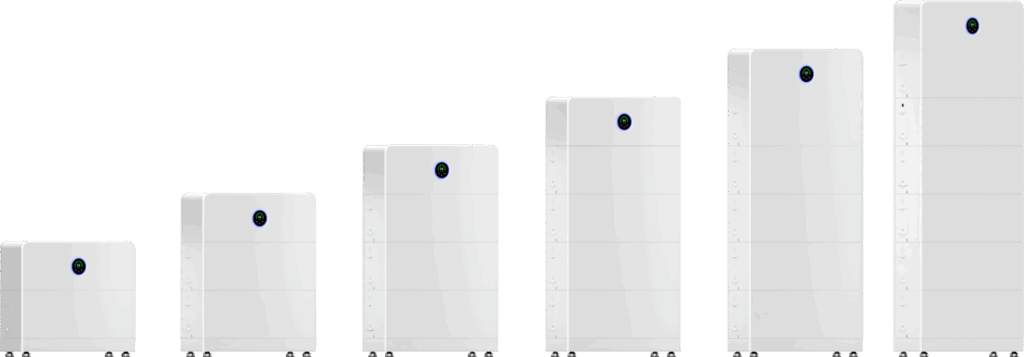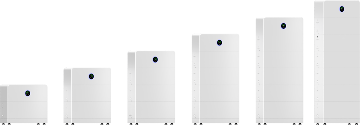 Each inverter can be connected to one to six lithium iron phosphate batteries (LiFePO4), available with a nominal capacity of 5.12 kWh or 8.32 kWh per module. Six of the smaller batteries provide a total capacity of 30.72 kWh, while six larger units provide 49.92 kWh. With support for up to six inverters and 288 kWh of storage, the system can be scaled to meet larger applications.