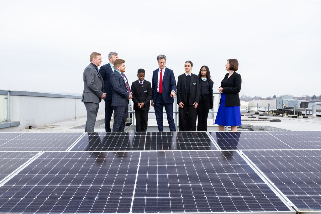 Ed Miliband and State Secretary for Education Bridget Phillipson visit a school in Sheffield to view their solar panels. Photo by Zara Farrar / Desnz.