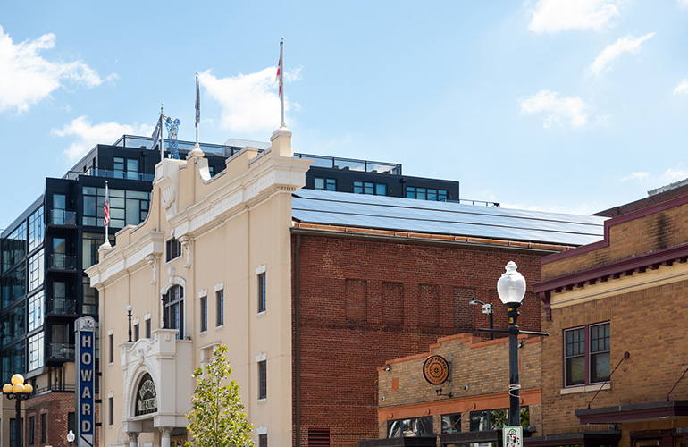 The historic Howard Theater in Washington, DC, has added a new 106.82 KW solar panels on the roof in combination with storage with the help of the DC Green Bank and DC Sustainable Energy Utility (DCSEU).