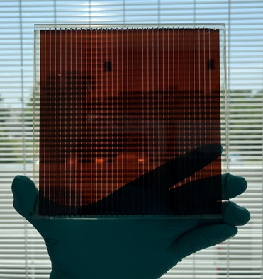 A bifacial perovskiet mini module of 13 cm x 13 cm manufactured on IPVF with a fully industrially relevant manufacturing process