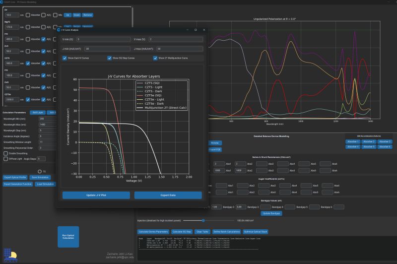 SOLEY combines the transfer matrix method (TMM) with an extensive detailed balance model to reproduce the behavior of photo periods under lighting. This approach offers various benefits compared to drift diffusion models, including the possibility of working with fewer input parameters and to quickly perform detailed balance calculations. That speed makes powerful batch calculations for brutal-force optimisations possible, which can be Li-KAO comments more reliable than parameter tuning that risks convergence to unfysical values.