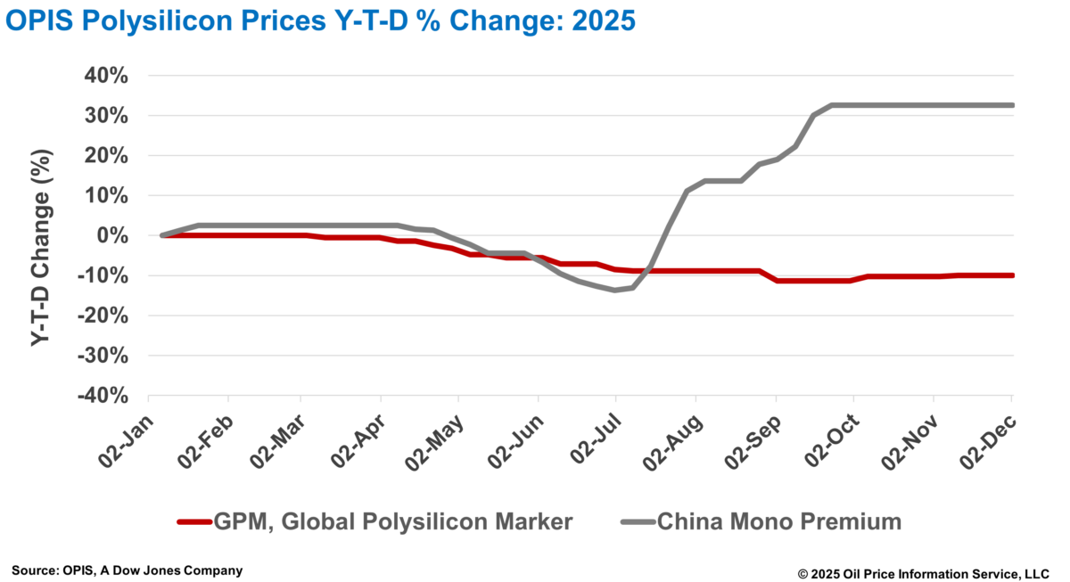 The Global Polysilicon Marker (GPM), the OPIS benchmark for polysilicon produced outside China, was valued at $18,319/kg, or $0.038/W, this week, remaining unchanged week-on-week, according to the OPIS Global Solar Markets Report published on December 2.