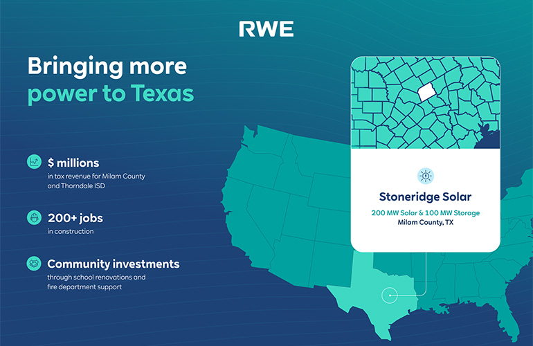 “Stoneridge Solar is a great example of the power of local partnership and the positive role energy projects play in economic stimulation. We are helping Texas and the nation secure their energy future with scalable, homegrown energy while delivering meaningful benefits to communities across America’s heartland,” said Andrew Flanagan, CEO of RWE Clean Energy.