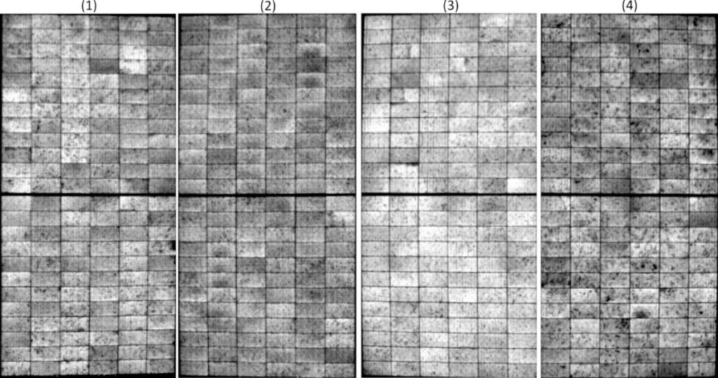 The measurements were taken throughout the year, with irradiation ranging from 200 W/m2 to 1,000 W/m2, and temperature ranging from 4 C to 37 ° C. To analyze the quality of the Del images, some modules were dismantled and sent for detailed inspection with the help of a high-resolved inspection.