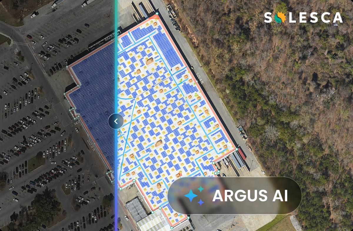 ARGUS brings AI automation to commercial solar. Named after a figure from Greek mythology, Argus was the giant who never slept, a symbol of ceaseless vigilance. Solesca’s ARGUS was created to bring that same ruthless precision to the design workflows of solar projects. By automatically scanning images and generating useful geometry in moments, ARGUS eliminates the heavy lifting of manual detection and drawing, so you can focus on design.