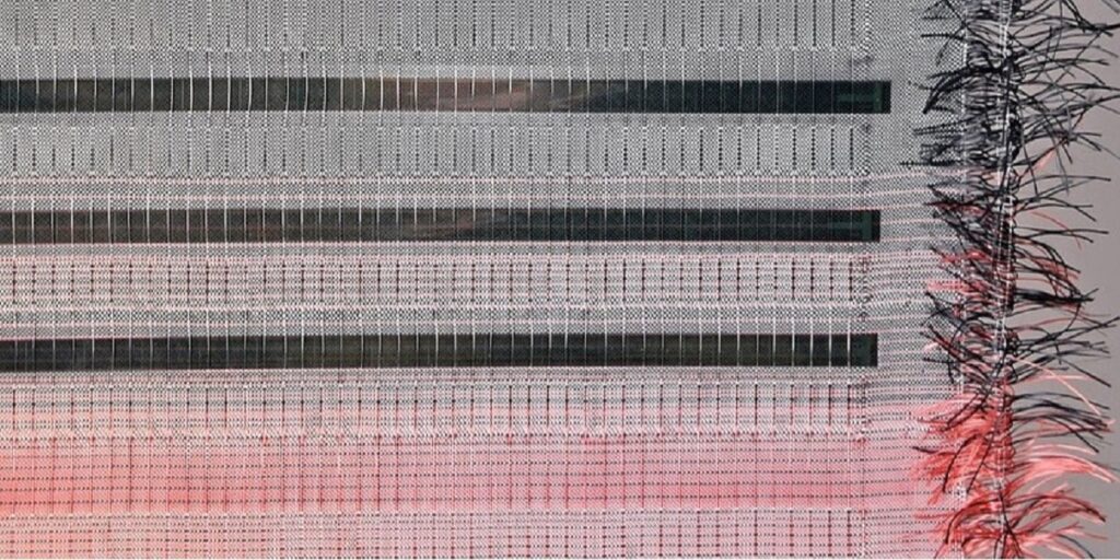 The new textile, which shares the same name as the project, is made of strips of encapsulated cone woven in panels made with recycled high -quality polyester threads and manufactured in a polyester weaving process.