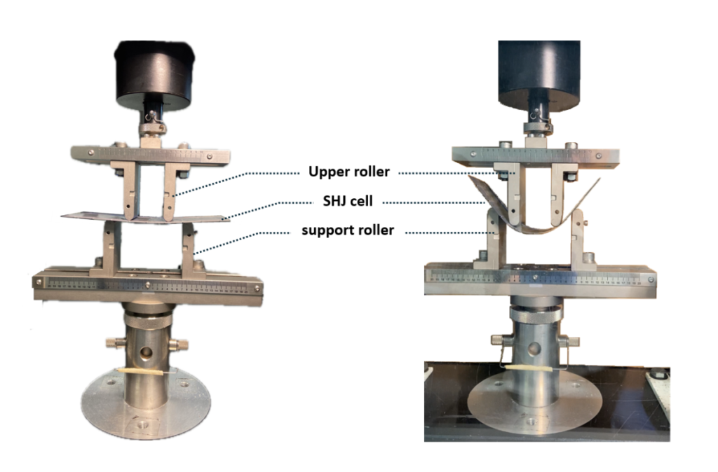 In addition, the group performed a four-point bending test (4PF). a standard mechanical test to determine the flexural strength and stress-strain behavior of a material, to measure the mechanical stress caused by the Cu contacts.