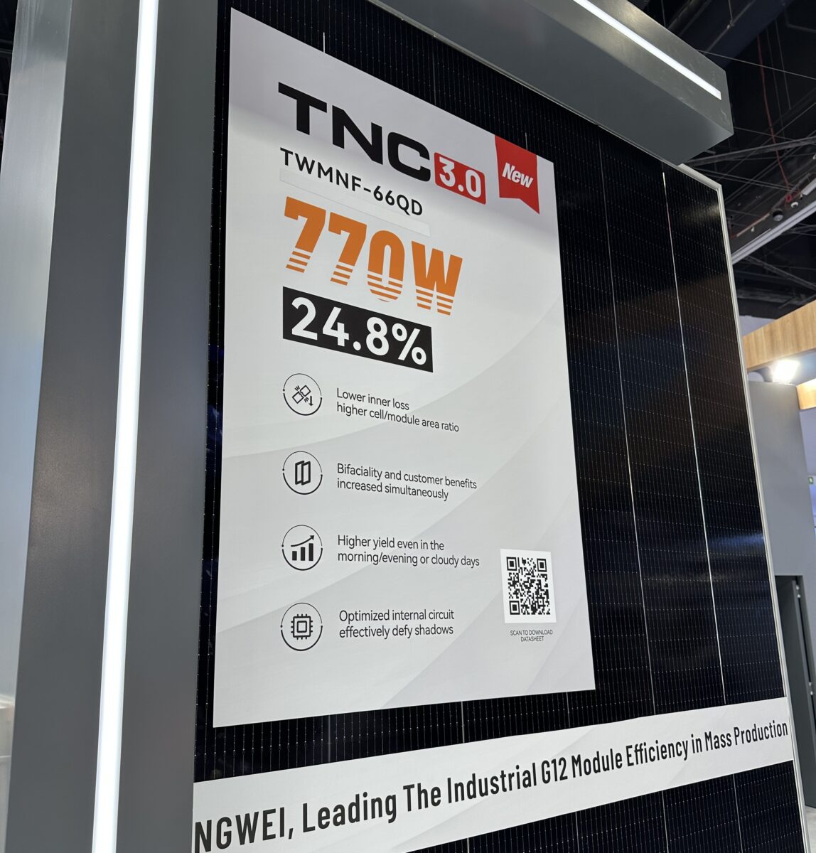 “The TNC3.0 module is the most powerful product of our TWMNF-66QD,” a company spokesperson said pv magazine. “It should be in mass production soon.”