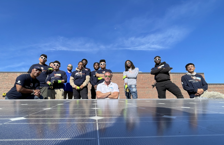 Trina pours solar panels to the youth construction program