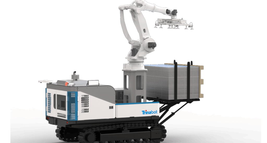 The Buildex equipment has a built-in forklift truck, a robot arm and advanced automation subsystems for navigation, speed and safety.